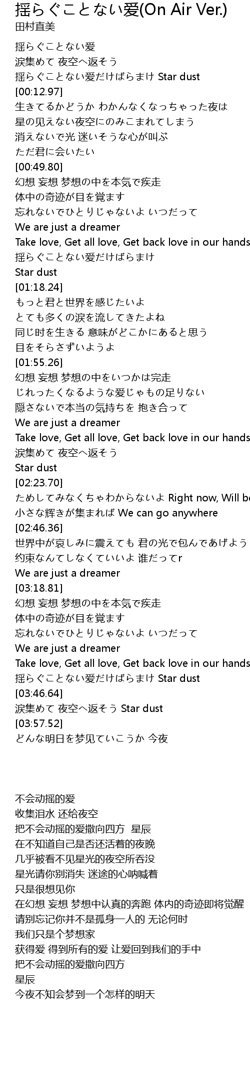揺らぐことない爱 On Air Ver Yao Ai On Air Ver Lyrics Follow Lyrics